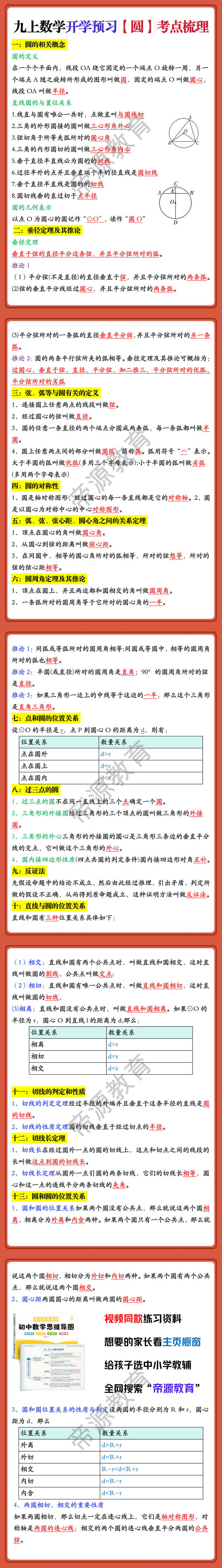 九上数学开学预习【圆】考点梳理