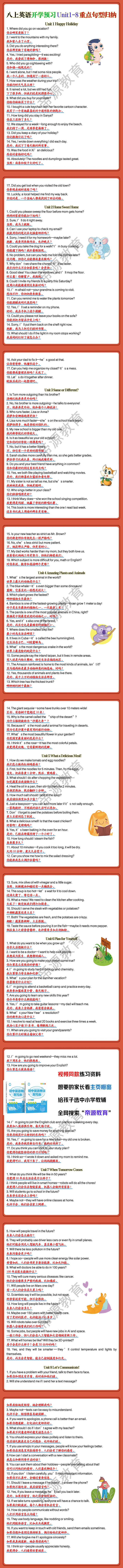 八上英语开学预习Unit1-8重点句型归纳