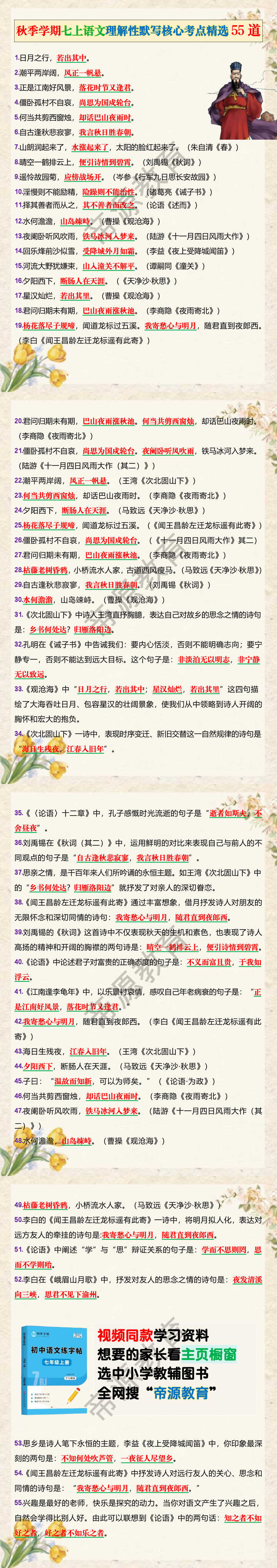 9.遥怜故园菊,应傍战场开。(岑参《行军九日思长安故园》)