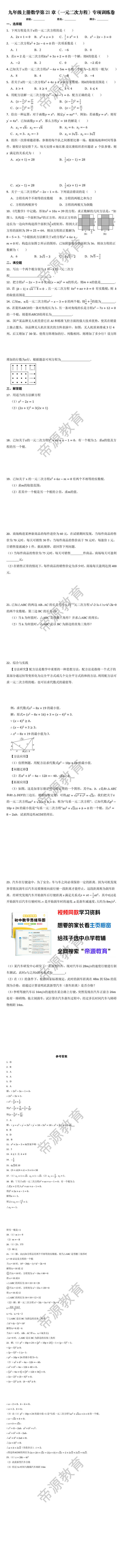 九年级上册数学第21章《一元二次方程》专项训练卷