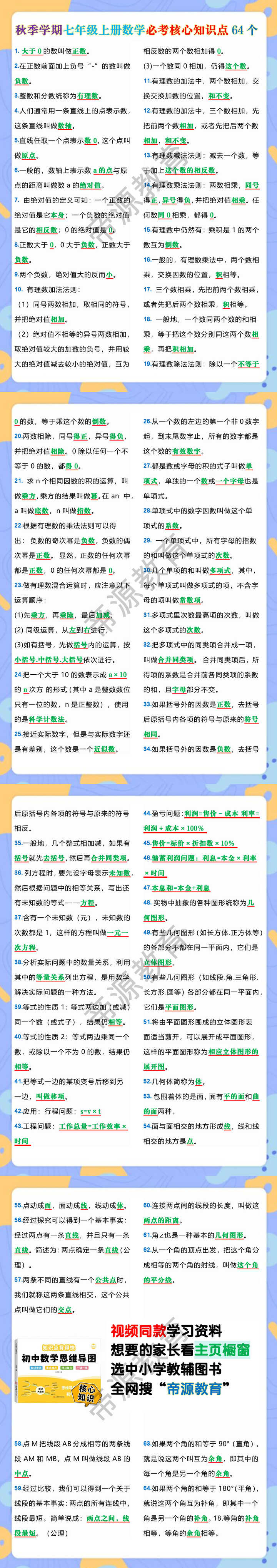7. 由绝对值的定义可知:一个正数的绝对值是它本身;一个负数的绝对值是它的相反数;0的绝对值是0。