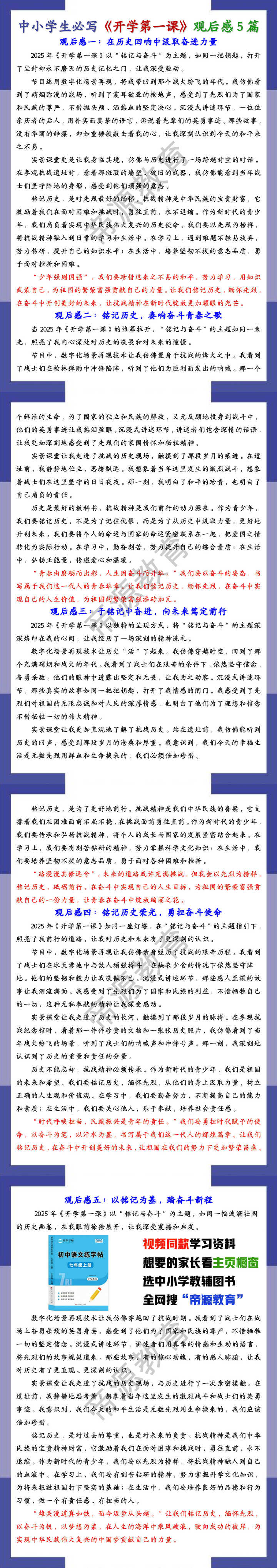 2025年《开学第一课》以“铭记与奋斗”为主题,如同一把钥匙,打开了尘封却永不磨灭的历史记忆之门,让我深受触动。