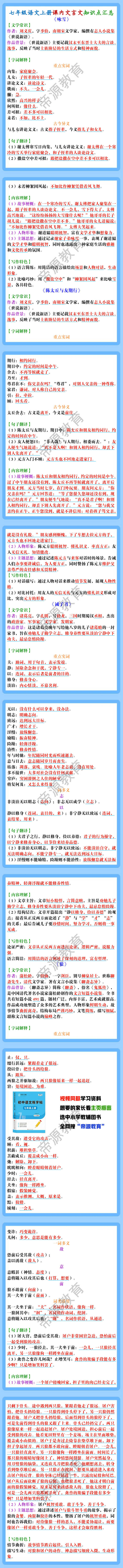七年级语文上册课内文言文知识点汇总