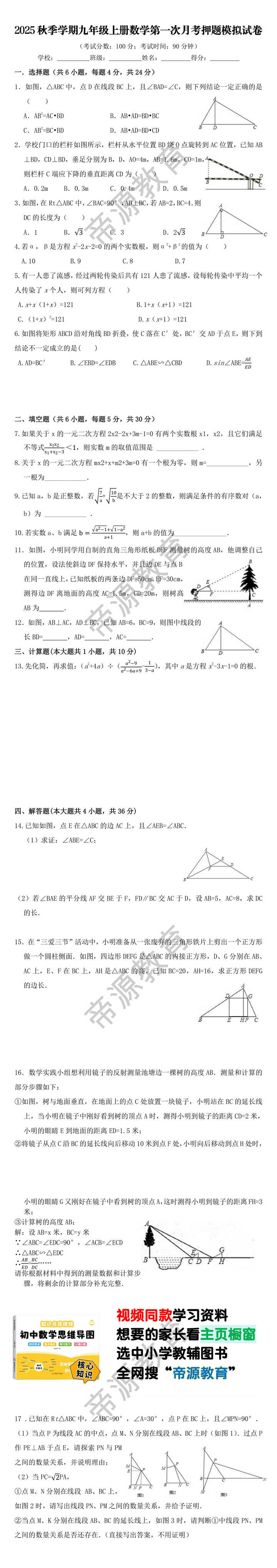 1.如图,△ABC中,点D在线段BC上,且∠BAD=∠C,则下列结论一定正确的是( )