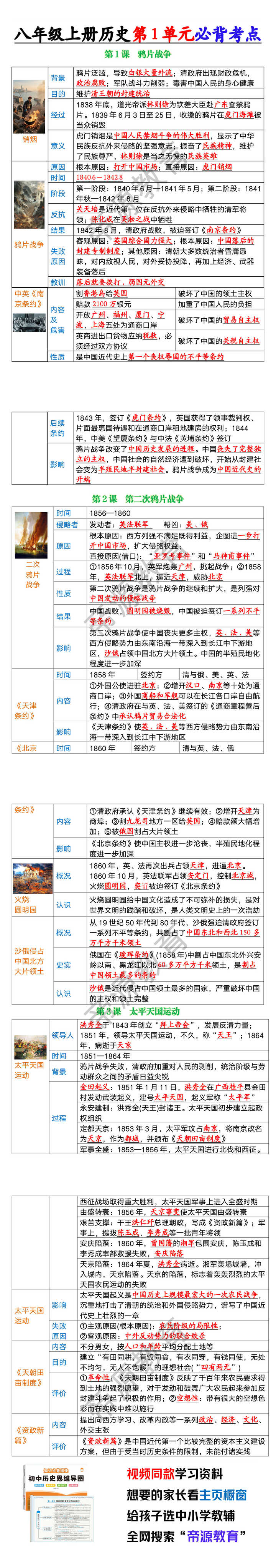 八年级上册历史第1单元必背考点