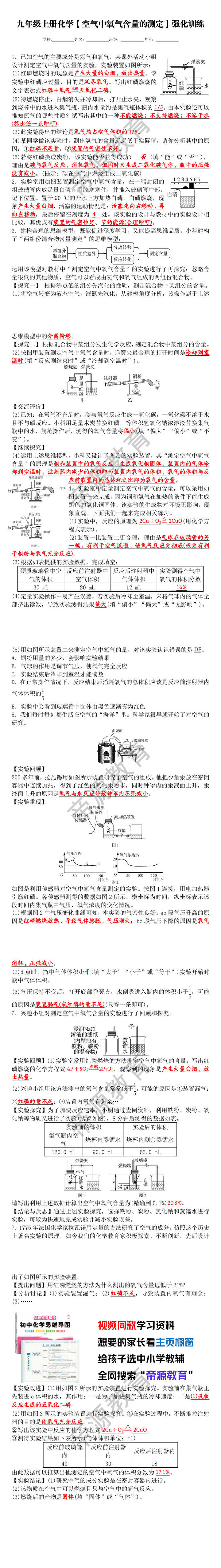 九年级上册化学【空气中氧气含量的测定】强化训练