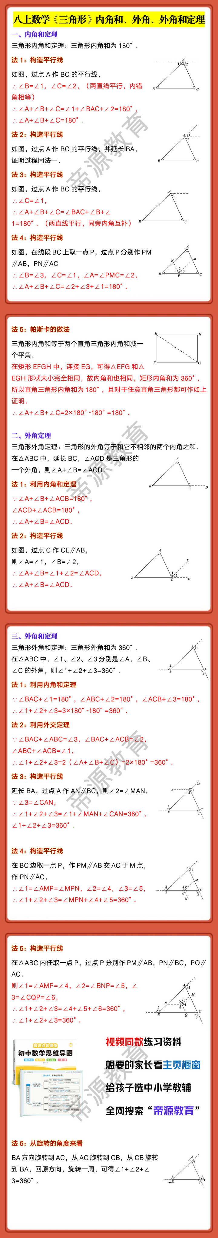 八上数学《三角形》内角和、外角、外角和定理