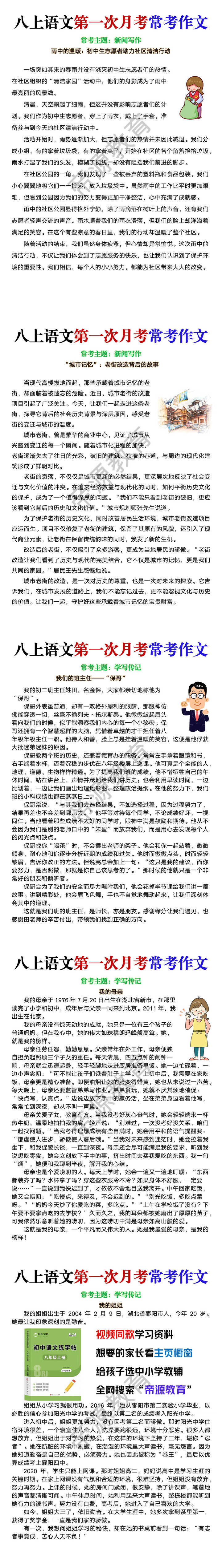 八上语文第一次月考常考作文