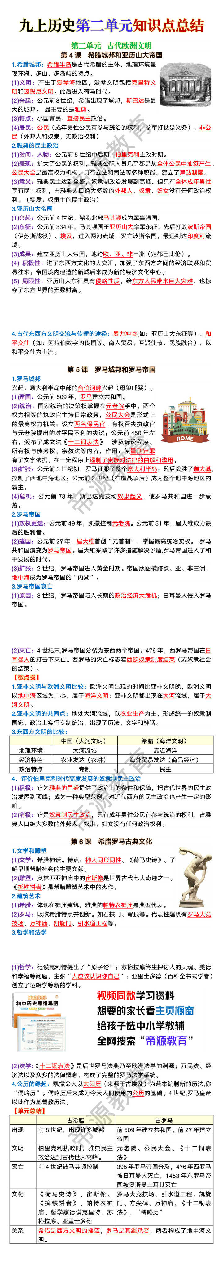 (1)文明:产生于爱琴海地区,爱琴文明包括克里特文明和迈锡尼文明。此后进入荷马时代。