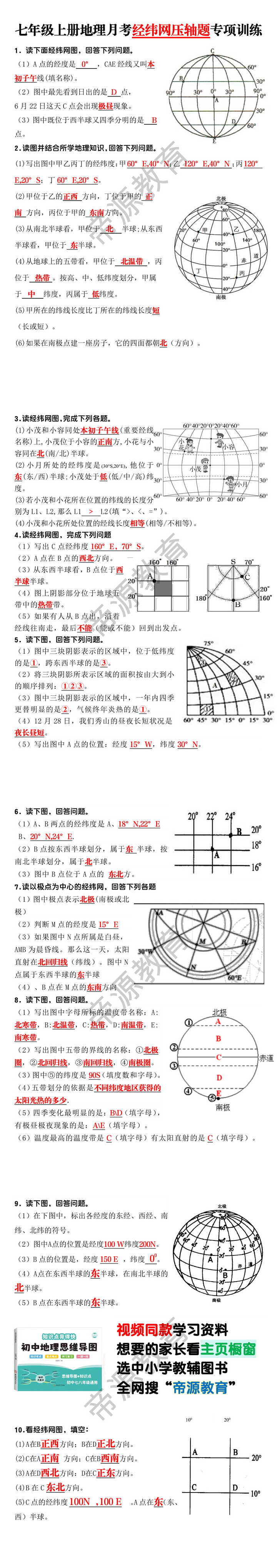(3)从南北半球看,甲位于 北 半球;从东西半球看,甲位于 东半球。