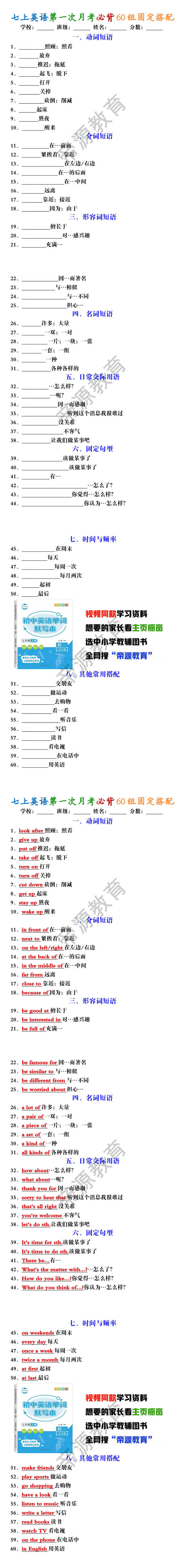 1、look after照顾;照看